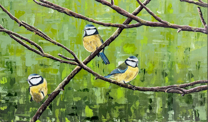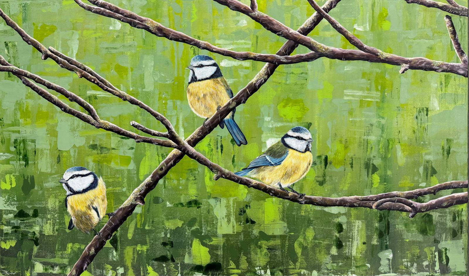 Dieses Werk wurde von der Bedeutung der Freiheit inspiriert. Die Blaumeisen, die nicht nur eine außergewöhnliche Schönheit besitzen, sondern auch in verschiedenen Lebensräumen leben, symbolisieren Anpassungsfähigkeit und Leichtigkeit des Lebens.