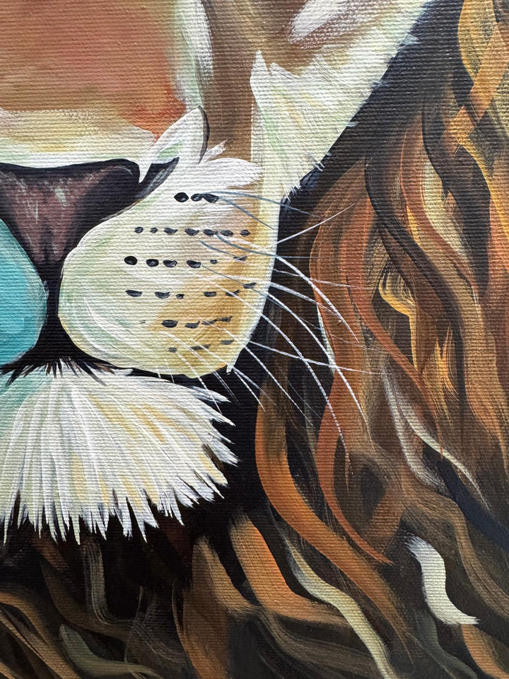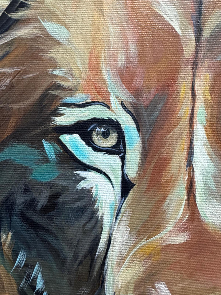 Dieses Werk wurde von der kraftvollen Energie des Löwen inspiriert – ein Sinnbild für Selbstvertrauen und Führung.